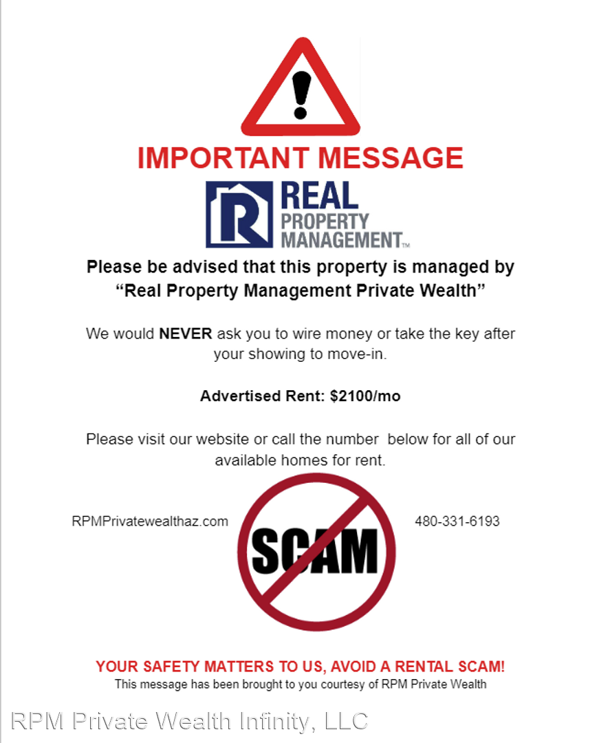 Amazing 3 Bedroom, 2 Bath Home! - 3 bedroom / 2 bathroom just off Carefree Hwy close to Hwy-17 away from the hustle and bustle of the city. This open and spacious home has well placed niches throughout this unique open and well designed floor plan. The kitchen is comfortably spacious with a pantry, appliances, plenty of cabinets and counter space to make this kitchen easy to operate in. Ceramic Tile. Easy care desert landscaping. 2 car garage large enough to protect your items from the blazing AZ sun. All pets must be approved by management. Act Now, this property will not last long. PLEASE BEWARE OF SCAMS! RPM WOULD NEVER ASK YOU TO WIRE FUNDS. IF YOU HAVE ANY QUESTIONS, PLEASE TEXT ONLY AT 480-331-6193. THANK YOU. Total monthly rent payment is approximately $2076.00, which includes city rental tax, administration fee. Tenant pays all utilities, tenant is responsible for landscaping and pest control. A minimum refundable security deposit of $2000 is due within 48 hours of receiving the lease agreement. First month's rent and a non-refundable $200 administration fee is due on lease start date. Rent will be prorated if the lease start date is after the 1st day of the month. Application Fee is $60 for the first adult occupant and $30 for each additional applicant. To qualify for our properties we require the following: * Please see information below regarding Criminal History * No Evictions in last 3 years (and no current judgments) * Monthly combined gross income of 3x the rental amount * A Credit Score of 540 or higher * No un-discharged bankruptcy * Proof of income at least 3x the monthly rent * Verifiable rental history including proper notice to previous landlord If you meet this criteria and would like to move forward with applying, we need the following to move forward with the application: * Application can be filled out online at www.rpmprivatewealthaz.com * Non-refundable Application fee is $60 per adult applicant and $30 for each additional adult applicant. Application fee can be paid online. * Copy of each adult applicants picture ID * One month of pay stubs (showing 3 times the monthly rent in gross income) * Applicant disclosure form * Rental history form CRIMINAL HISTORY: Not only must Applicant have acceptable credit history, additionally, all Applicants must meet our Criminal History Criteria. Applicants that are registered sex offenders will be denied. Applicants must have no felony convictions less than 10 years old that involve violent crimes against persons or property, including but not limited to murder, arson, kidnapping, assault, bomb related offenses, robbery or burglary, terrorism OR that involve the manufacturing or distribution of drugs in any manner. All other felony convictions must be more than 5 years old. Conviction of any drug related offenses involving possession only, or alcohol related offenses where no one was permanently injured or killed, must be at least 2 years old. Successful completion of any felony sentence at least 2 years ago and no new criminal activity for at least 2 years before this application is also required. No Applicant with any outstanding warrants or crime that is awaiting trial will be accepted. Please check our website for more homes. RPMprivatewealthaz.com.
