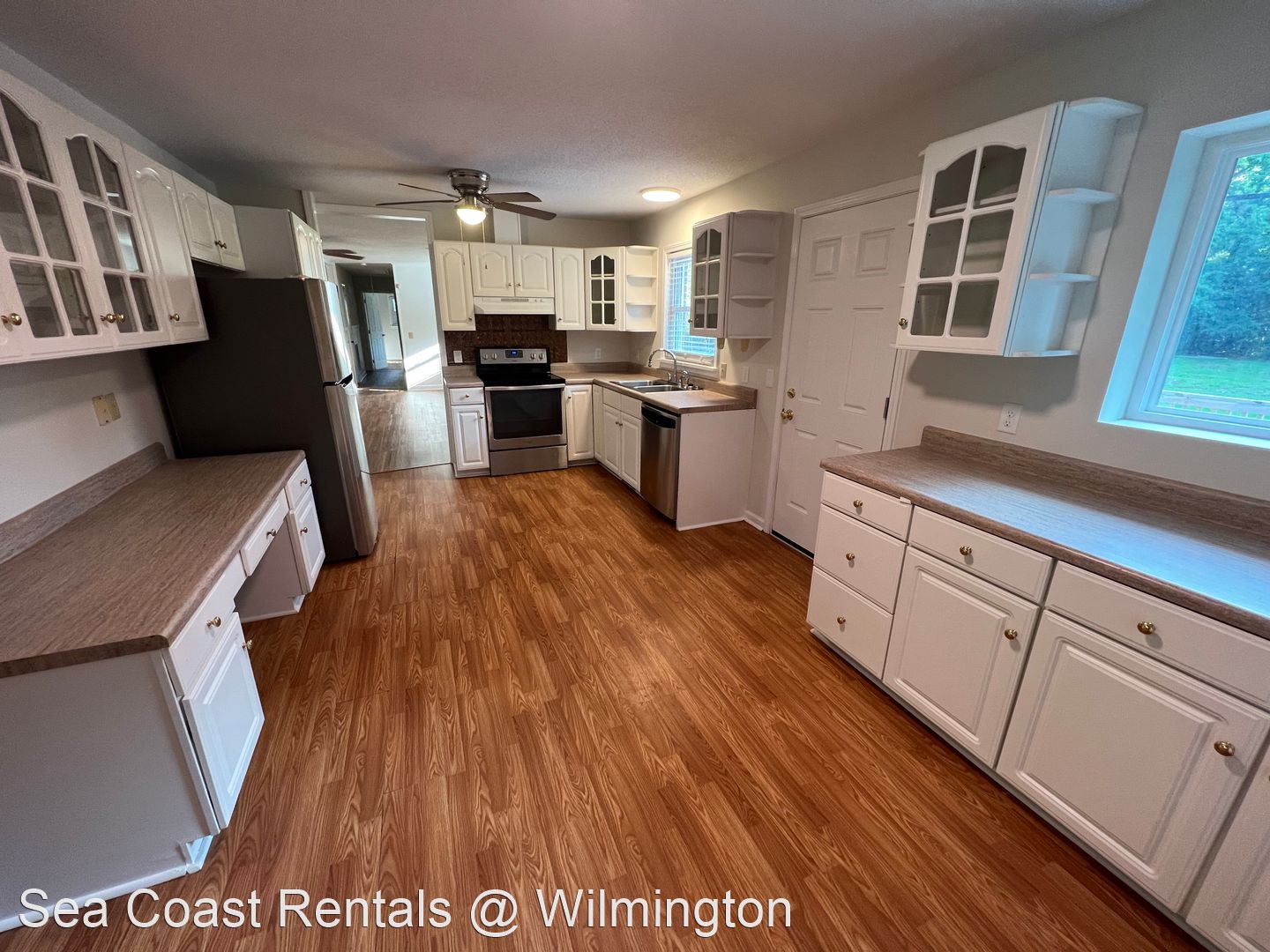 3 bedroom 2 bath located located in Porters Neck , Lawn maintenance included - Recently updated brick ranch on Futch Creek Road. Open floor plan with huge living room and a kitchen that is large with stainless steel appliances. Right off the kitchen is a spacious formal dining room. Newly painted through-out with new flooring and remodeled bathrooms. To the left of the living room, all three bedrooms and bathrooms are located. Home sits on over half an acre of land and has trees in the yard along with a back deck and lower patio area. This spacious backyard is completely fenced in with a storage shed at the very back. Conveniently located to grocery stores, shopping, and restaurants. Short distance to the beach and I-40. Application Fees Apply No Smoking No Co-Signers Office Hours / Showings: M - F 9am - 5pm Schools: Porters Neck Elementary Holy Shelter Middle Laney High